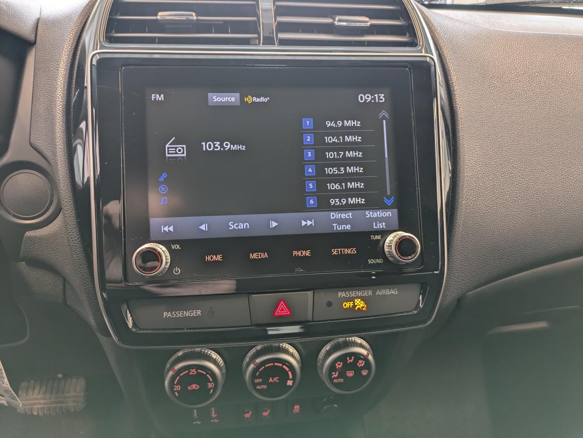 // JAMAIS ACCIDENTÉ! // Ce Mitsubishi RVR ES FWD 2023 usagé, offert chez Rallye Mitsubishi à Gatineau, est un VUS compact pratique pour la ville et les déplacements quotidiens. Avec sa couleur blanche, sa traction avant et son moteur 2,0 L à essence sans plomb, il propose une conduite simple et efficace. Odomètre: 80 897 km. CARACTÉRISTIQUES DU RVR ES FWD »» Traction avant pour conduite simple au quotidien »» Moteur 2,0 L à essence sans plomb »» Transmission automatique à variation continue (TVC) »» Format 4 portes, accès facile avant et arrière CARACTÉRISTIQUES DE SÉCURITÉ AVANCÉES »» Système de freinage anti-blocage (ABS) »» Contrôle de stabilité pour meilleure tenue de route »» Coussins gonflables latéraux et rideaux latéraux »» Caméra de recul pour manoeuvres en marche arrière PERFORMANCE ET EFFICACITÉ »» Moteur 2,0 L, réponse adaptée en ville »» Transmission automatique (TVC) pour conduite fluide »» Direction assistée pour stationnement plus facile »» Régulateur de vitesse pour trajets d'autoroute CONFORT »» Sièges avant chauffants pour l'hiver »» Climatisation avant avec contrôle automatique température »» Volant réglable selon votre position »» Vitres électriques et verrouillage automatique des portes TECHNOLOGIE ET CONNECTIVITÉ »» Intégration Bluetooth pour appels mains libres »» Commandes audio au volant, accès rapide »» Radio satellite pour plus de choix audio »» Phares automatiques pour éclairage sans souci ESPACE DE CHARGEMENT »» Accès au coffre arrière pratique au quotidien »» Banquette arrière utilisable pour passagers et sacs »» Pneu de secours inclus pour imprévus »» Dégivreur de vitre arrière pour visibilité RÉCOMPENSES ET RECONNAISSANCES APPRÉCIÉ DES AUTRES PROPRIÉTAIRES »» Format compact facile à garer en ville »» Sièges avant chauffants utiles au Québec »» Conduite simple avec traction avant »» Bonne visibilité et caméra de recul pratique GARANTIE --> Garantie légale; --> Garantie d'usage; --> Garantie de durée raisonnable; --> Garantie contre les vices cachés. Ce Mitsubishi RVR ES FWD 2023 réunit l'essentiel: sécurité avec ABS, contrôle de stabilité et coussins gonflables latéraux, confort avec sièges avant chauffants et climatisation à contrôle automatique, et connectivité Bluetooth avec commandes audio au volant. Un choix logique pour un VUS compact usagé, prêt pour Gatineau. Le NIV de ce Mitsubishi RVR ES FWD 2023 est le JA4AHUAU8PU602857 .